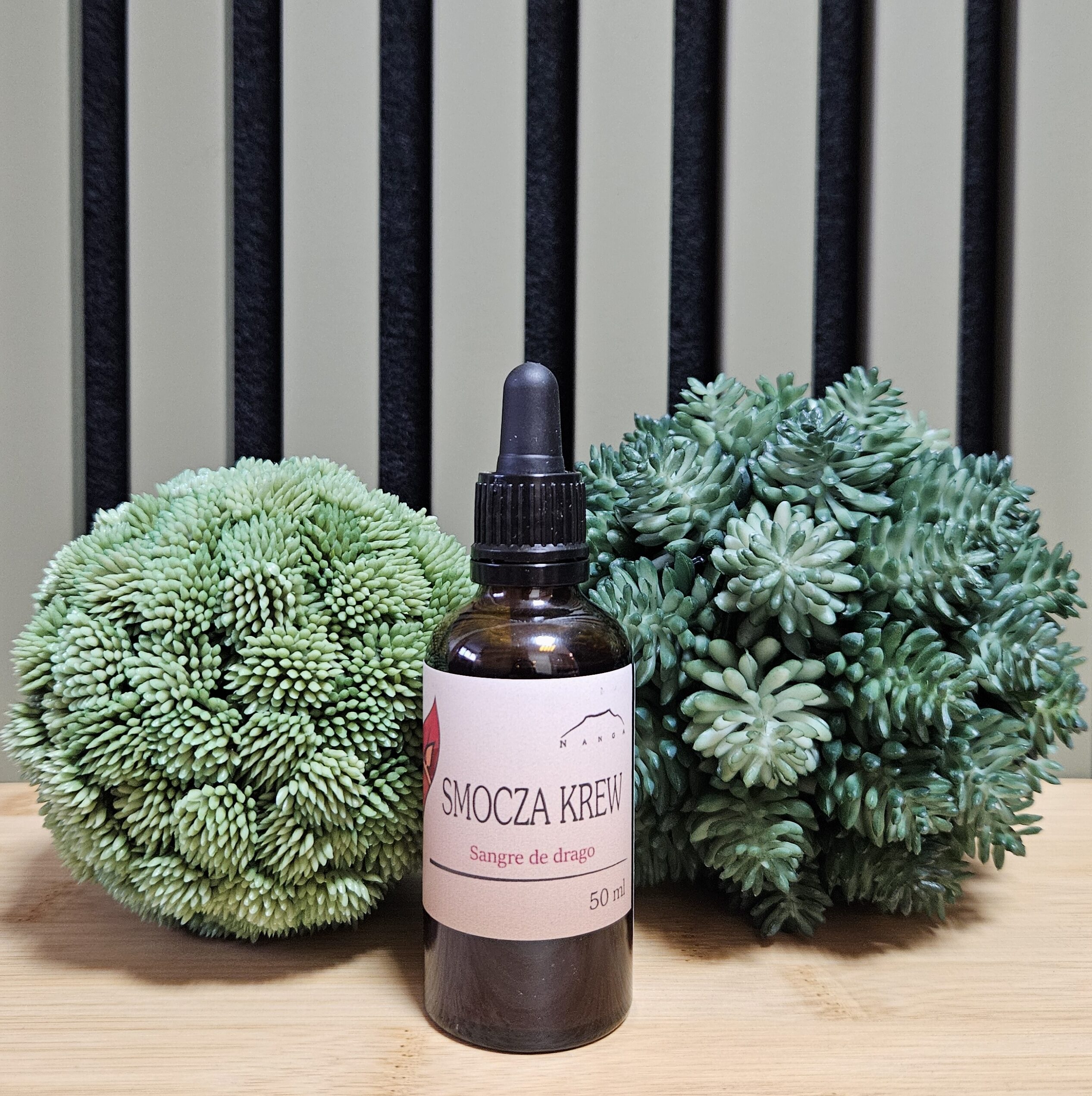 Potoczna nazwa to BANDAŻ W PŁYNIE. Smocza krew to naturalna żywica pozyskiwana z drzewa Croton lechleri, rosnącego na północnych obszarach amazońskich lasów. Zawiera ona w sobie liczne alkaloidy wspierające odpowiedź przeciwzapalną organizmu oraz działające regenerująco na skórę. Obok nich obecne są m.in: polifenole i diterpeny wykazujące działanie antyoksydacyjne i antybakteryjne. To ceniony surowiec wśród rdzennych mieszkańców Ameryki Południowej, stosowany jako preparat wspierający procesy gojenia się, działający ochronnie i łagodząco na podrażnienia skórne. Znajduje zastosowanie jako środek pomagający załagodzić krwawienie i zminimalizować powstawanie blizny.